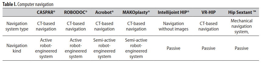 Analyzing the use of various computer navigations in total hip arthroplasty, we consider active systems to be the most accurate ones, and semi-active and augmented reality systems for their ease of use.